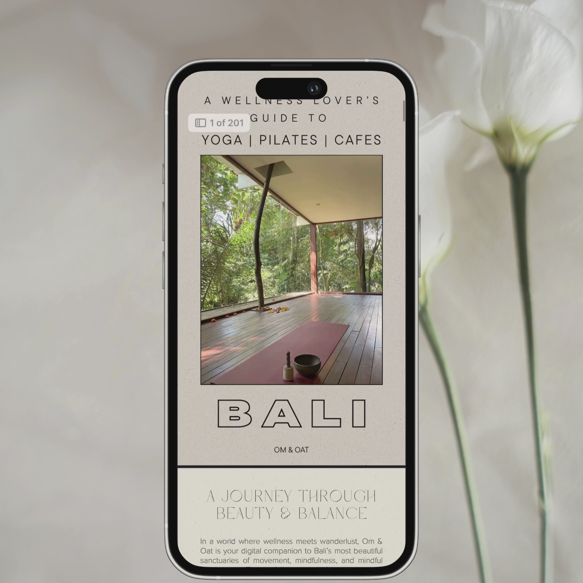 A thoughtfully curated digital guide to Bali’s most beautiful yoga and pilates studios, each paired with nearby aesthetic cafes for post-practice nourishment. Designed for the modern wellness lover, this guide blends movement, mindfulness, and mindful indulgence into one soft, elevated experience. Whether you're based in Bali or flowing through on a soul sabbatical, Om & Oat helps you plan days with ease, beauty and intention.